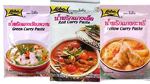 Lobo Curry Paste Variety Bundle, 1.76 oz packet (Pack of 6) includes 3-Pkt Red Curry Paste + 3-Pkt Green Curry Paste + 3-Pkt Yellow Curry Paste