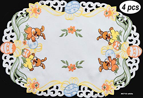 Creative Linens 4PCS Embroidered Easter Bunny Egg Floral Placemats 11x17 Oval White, Set of 4 Pieces