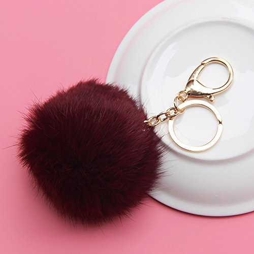 Yingrui 8cm Fluffy Rabbit Fur Ball Charm Key Chain for Car Key Ring or Bag (Wine Red)