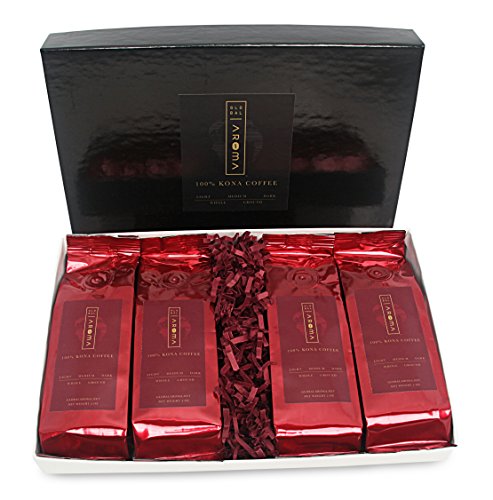 Kona Coffee Exquisite Black Gift Box, Medium Roast, Whole Bean, 2 oz of 4 Bag, Pure Coffee, No Mixed, Super Coffee Gifts, Delicious Coffee, Medium Dark Roast