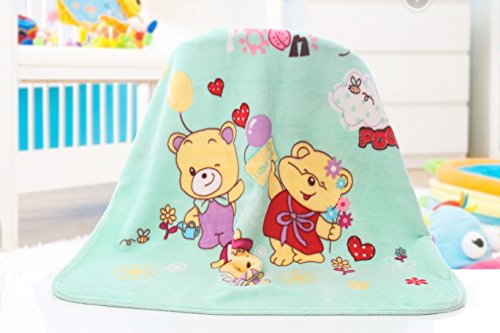 Animal Design Printed Double Sides Thick Mink Fleece Super Soft Baby Toddler Boys Girls Children Blanket Throw (Medium, Green Bear)