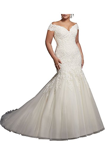 V-Neck Off Shoulder Mermaid Wedding Dresses for Bride Lace Applique Bridal Gowns 2019