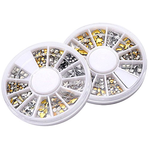 eBoot 3D Nail Art Decorations Wheel with Mini Metal Studs, 2 Pack