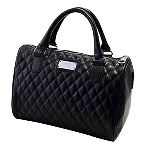 chinatera Women Leather Handbags Diamond Lattice Black Quilted Pillow Bags Vintage Shoulder Messenger Bag