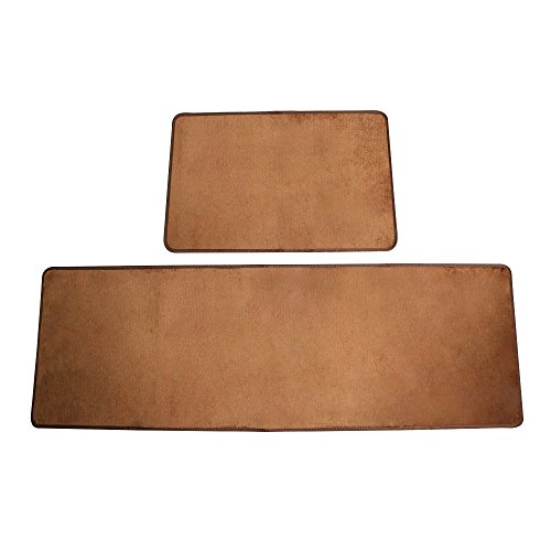 Yoler Thin Summer Kitchen Mat Non-slip Microfiber Flannel Area Rugs Washable Rug Set of 2 Pieces (Brown Large)
