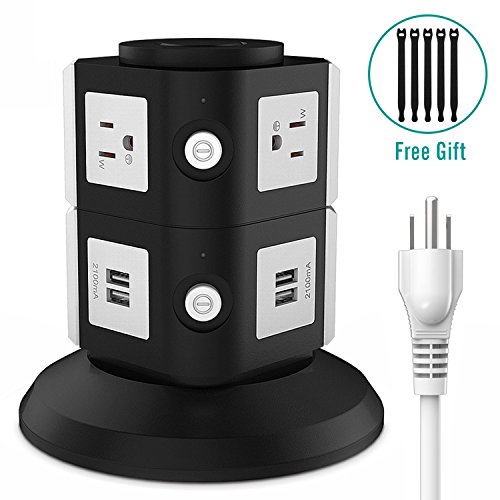 Surge Protector, FlePow 6-Outlet Power Strip Charging Station with 4-Port USB Charger for iPhone, iPad and Others (Including 5 Pcs Reusable Fastening Cable Ties)