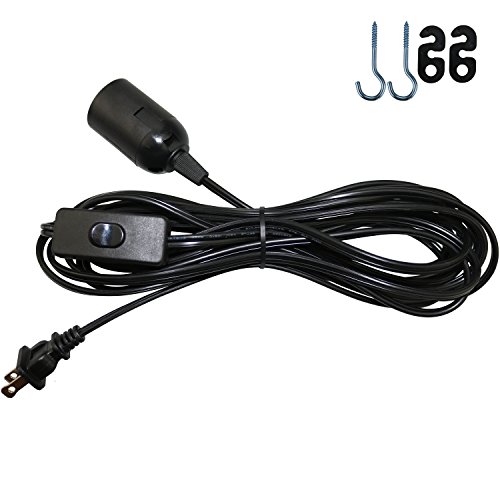 Lightingsky Extension Light Cord Hanging Lantern Pendant Lamp Cord Cable E26 Bulb Socket to 2-Prong US AC Power Cord with On/Off Switch UL Listed (20 Feet, Black-1 Pack)