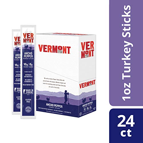 Vermont Smoke & Cure Meat Sticks - Antibiotic Free Turkey Sticks - Gluten-Free Snack - Paleo and Keto Friendly - Nitrate Free - Ancho Pepper - 1oz Stick - 24 Count