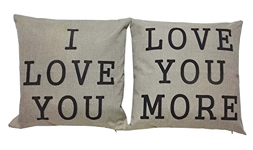 Lydealife (TM)18 X 18" Cotton Linen Decorative Couple Throw Pillow Cover Cushion Case Couple Pillow Case, Set of 2 - I Love You & Love you More LD094