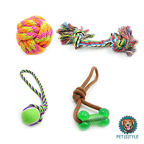 Set of Four Interactive Cotton Rope Dog Toys - For Chewing and Playing