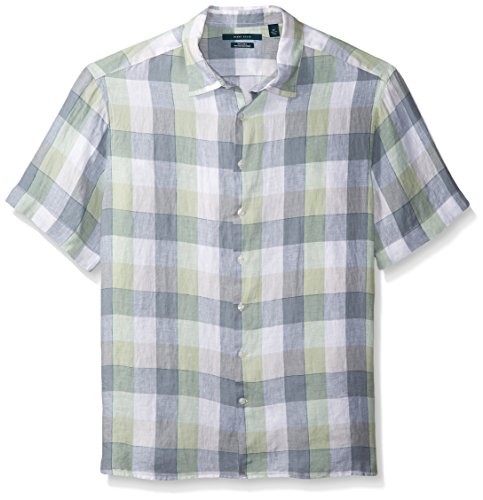 Perry Ellis Men's Big-Tall Buffalo Check Linen Shirt, Smoke Green, 2X-Large/Tall