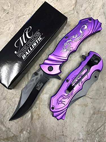 Master Cutlery Collection Dragon Fire Flame Pattern Spring Assisted Stainless Steel Knife, 4.5 Closed (Purple)