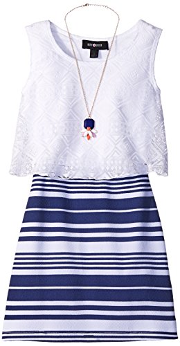 Amy Byer Big Girls Sleeveless Lace Popover Bodycon Dress, Pat K/Navy, 8