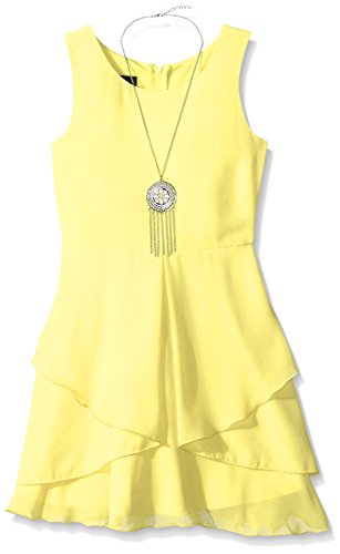 Amy Byer Big Girls Sleeveless High Neck Overlay Dress, Yellow, 12