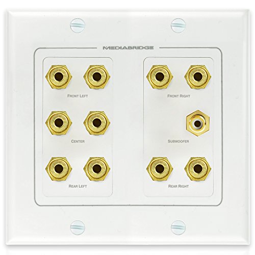 Mediabridge Speaker Wall Plate w/Binding Posts (5 Pair) & RCA (1) - Free Mounting Bracket - for 5.1 Surround (WP2-B5/S1)
