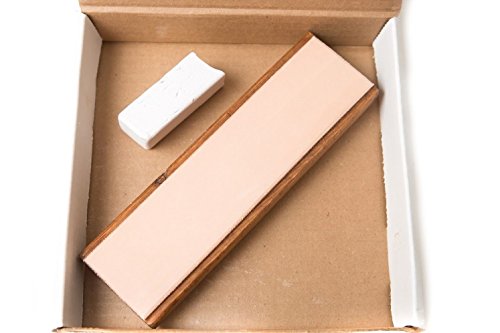 8”x2” Leather Honing Block w Buffing Compound Stained & Coated Clear Rubber Feet