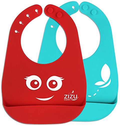 ZIZU BPA Free Waterproof Silicone Baby Bibs, Red