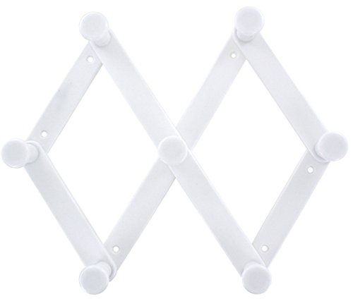 Accordion Style ALAZCO 7-Pegs White Plastic Expandable Rack Hat, Cap, Belt, Umbrella Coffee Mug For Wall Closet, Bathroom, Dorm & More