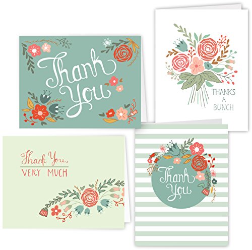 One Jade Lane - Floral Festival - Designer Thank You Cards - Heavy Stock - 4 Designs - Set of 12 Folded Cards & Envelopes, blank paper cards.