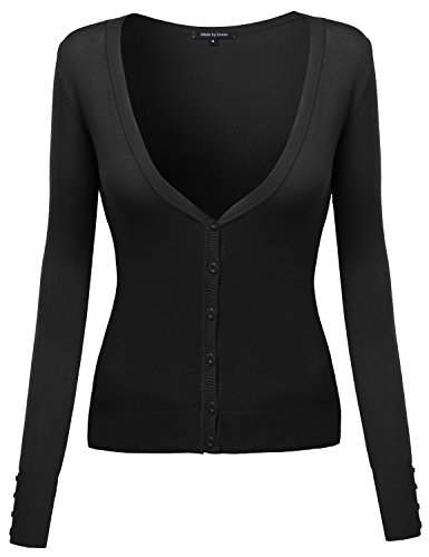 Made by Emma MBE Women's Classic Basic Deep V-Neck Cardigan with