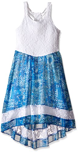 Speechless Big Girls Lace to Chiffon Lattice Knee Length Sleeve Less V-Neck Side Zipper, Ivory/Blue, 12