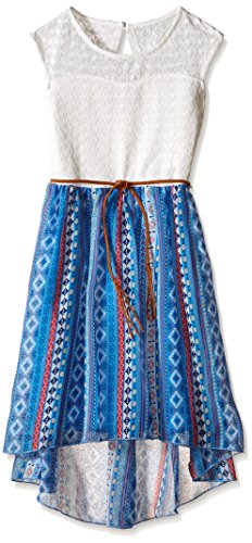 Speechless Big Girls' Lace to Chiffion Round Neck Dress, Ivory/Blue, 14
