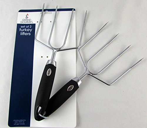 Grand Gourmet Set of 2 Chrome Plated Turkey Fryer Lifters Soft Grip Handles