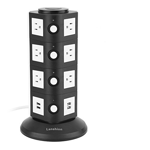 Lanshion Vertical Power Strip Smart 14-Outlet Surge Protector 4-USB Charge Station Socket 6.5ft Extension Cord(Black)