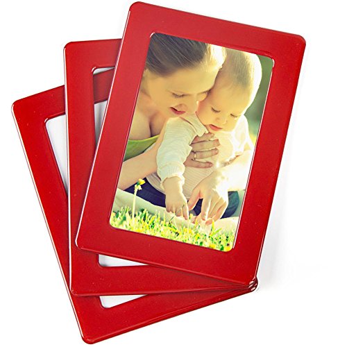 Merkapa Pack of 3 Crystal Magnetic Photo Frame 6" Magic Picture Frame Picture Wall (Red)