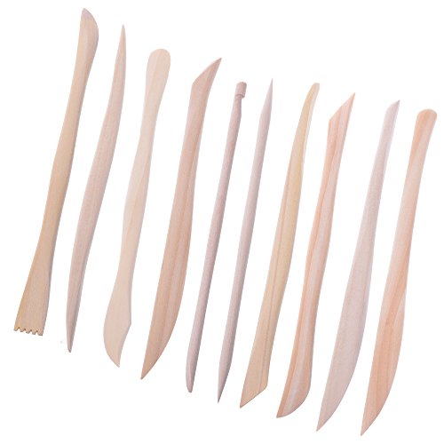 BCP Pack of 10 Wooden Clay Shaping Carving Tool Set Modeling Carving Kit for Sculpture Pottery