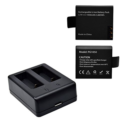 Campark 1050mAh Rechargeable Battery (2-Pack) and USB Dual Battery Charger for Campark Cube Action Camera