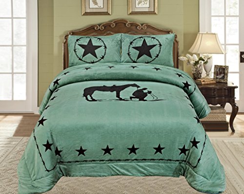 3 Piece Texas Western Design Star Rustic Borrego Fleece Comforter Set Style (King)