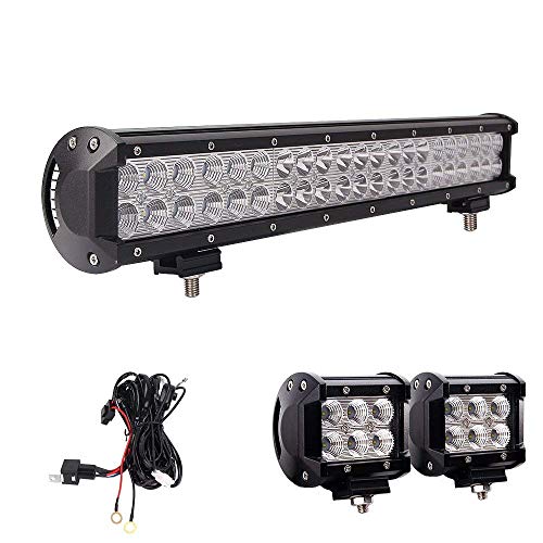 Yingtex 126W 10-30V Waterproof Curved Bar (50-Inch) with 2 Piece 18W Flood LED Lights and Wiring Harness, Mounts, 4 Pack