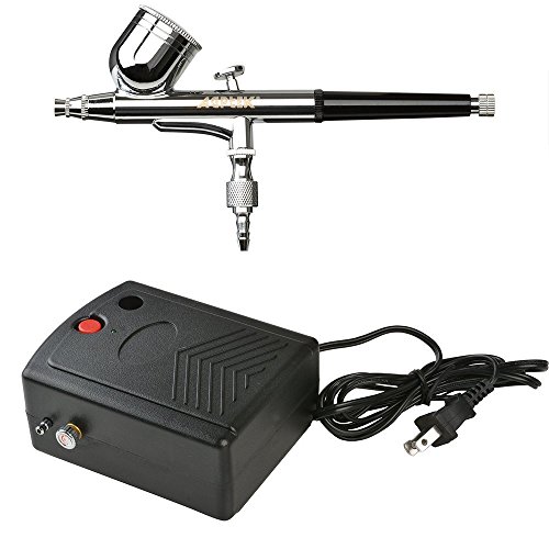 AGPtek AB22 Portable Set, Multi-Purpose Precision Dual-Action Gravity Feed 0.3mm Nozzle Airbrush Kit with Mini Compressor,A 5 Feet Air Hose, a, 22.518.513cm, Black