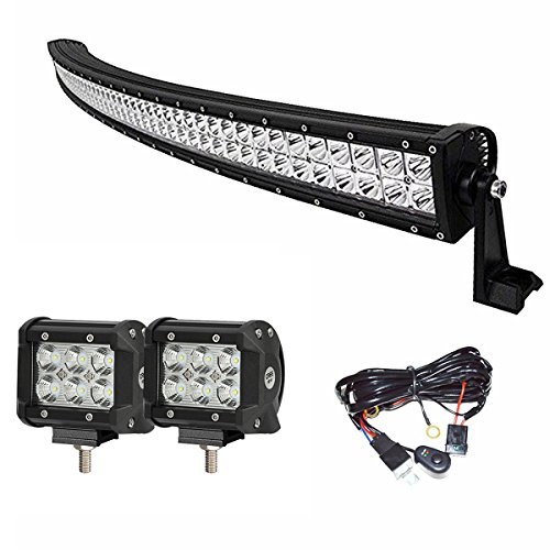 Easynew IP68 300W 10-30V Waterproof Curved LED Light Bar (52-Inch) with 2 Piece 18W LED Lights and Wiring Harness, Mounts