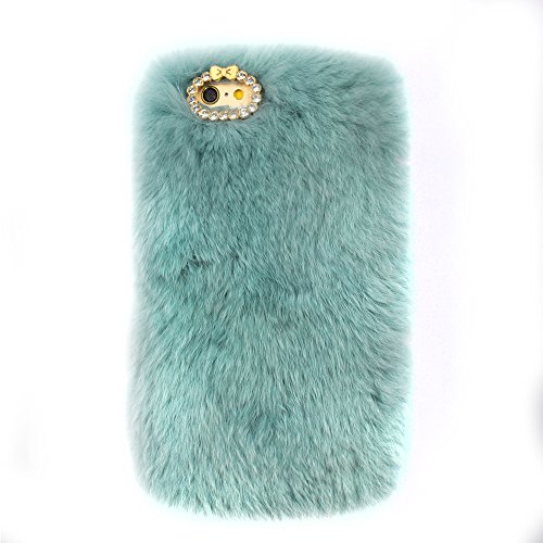 iPhone 6S Case, TURF Winter Series Soft Rabbit Fur Back Cover with Bling Diamond Crystal Tiny Bow for Apple iPhone 6S 4.7 Inch (Mint Blue)