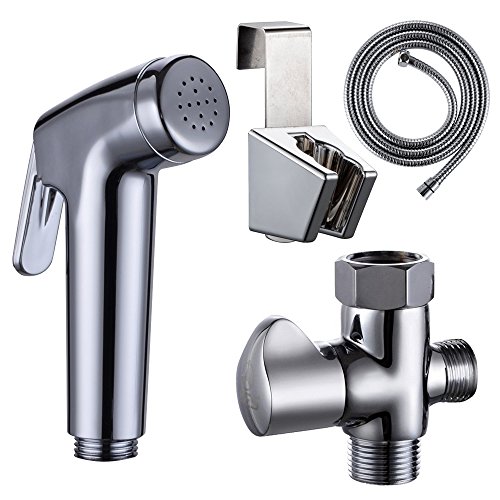Interior Solutions Toilet Bidet Sprayer with T-adapter and Shower Hose and Bracket in Bathroom Chrome SS6003+D2011