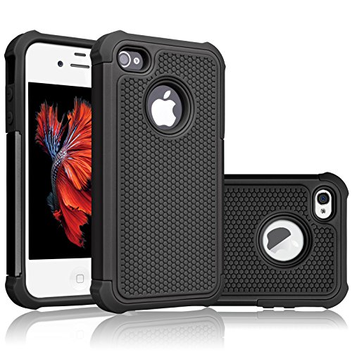 Tekcoo for iPhone 4S Case, Tekcoo iPhone 4 / 4G Cover, [Tmajor] Shock Absorbing Hybrid Best Impact Defender Rugged Slim Grip Bumper Cover Shell Plastic Outer & Rubber Silicone Inner [Coal Black]