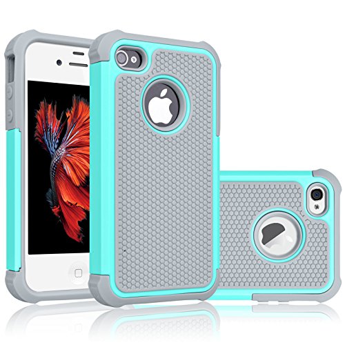 Tekcoo for iPhone 4S Case, Tekcoo iPhone 4 / 4G Cover, [Tmajor] Shock Absorbing Hybrid Best Impact Defender Rugged Slim Grip Bumper Cover Shell Plastic Outer & Rubber Silicone Inner [Turquoise/Grey]