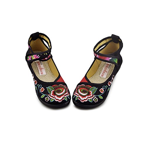 Vintage Chinese Embroidered Floral Shoes Women Ballerina Mary Jane Flat Ballet Cotton Loafer
