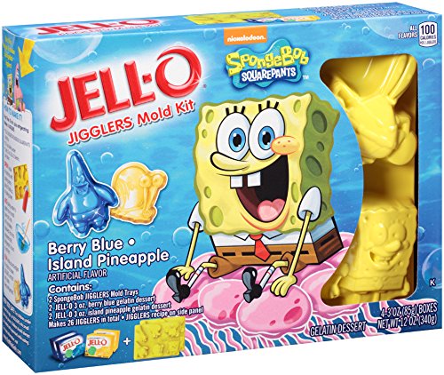 JELL-O Jigglers Mold Kit SpongeBob Square Pants, Berry Blue Island Pineapple, 12.0 Ounce