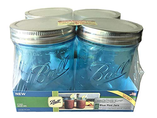 Ball Pint Size Wide Mouth Canning Jars 16-oz, Collection Elite Series Blue (4-Pack)