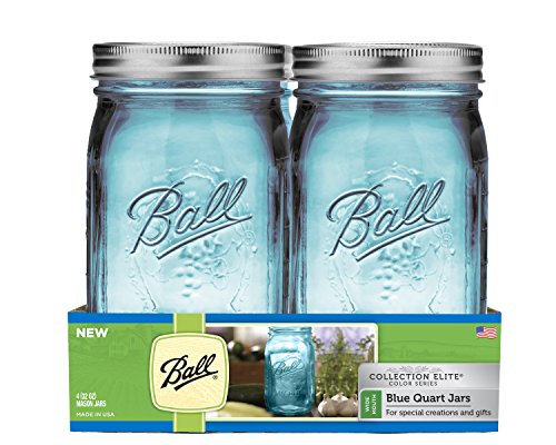 Ball TV205951 Collection Pack, (R) Wide Mouth Canning Jars 4/pkg-Quart-Elite Color Series Blue, WM