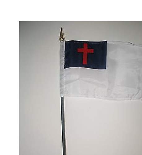 Christ Christian Cross Flag 4"x6" Desk Set Gold Base