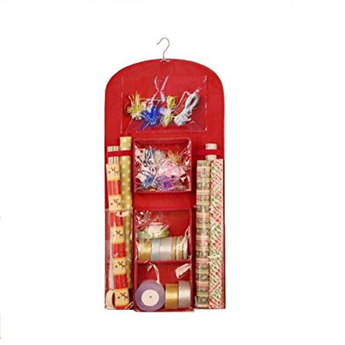 Holiday Hanging Gift Wrap Organizer, Suspends from Any Closet Rod or Hook, Multiple Clear Pockets
