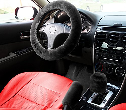 Zone Tech Non-Slip Car Decoration Steering Wheel Handbrake Gear Shift Plush Cover – Auto Comfortable Thermal Steering Wheel Cover (Black)