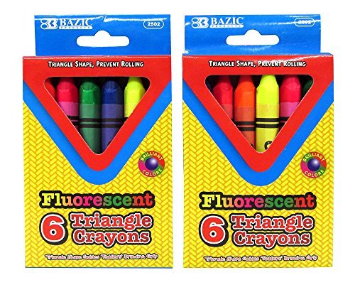 Childrens Large Fluorescent Colored Ergonomical Triangle Crayons - 2 Boxes of 6!