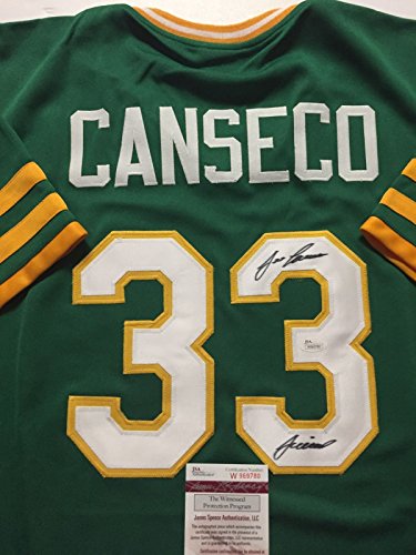 Autographed/Signed Jose Canseco "Juiced" Oakland Athletics A's Green Baseball Jersey JSA COA