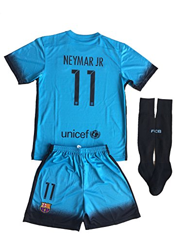 NEW 2015/16 Fc Barcelona Neymar Jr #11 Third Away Blue Youths Football Soccer Kids Jersey & Short & Socks
