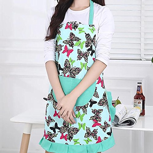 Cuisine + Style Canvas Retro Lovely Comfortable Classic Cute Flirty Fashion Women's Kitchen Apron Cooking Apron Baking Apron with Convenient Pockets for Ladies Girls Wife Daughter (Green)